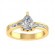 A stunning pear shape center stone is framed by a gently curved band set with six baguette diamond accents. The ring can be worn facing in other direction for a different look.